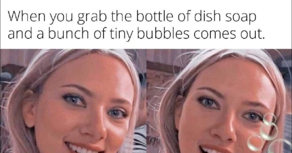 When you grab the bottle of dish soap and a bunch of tiny bubbles comes out