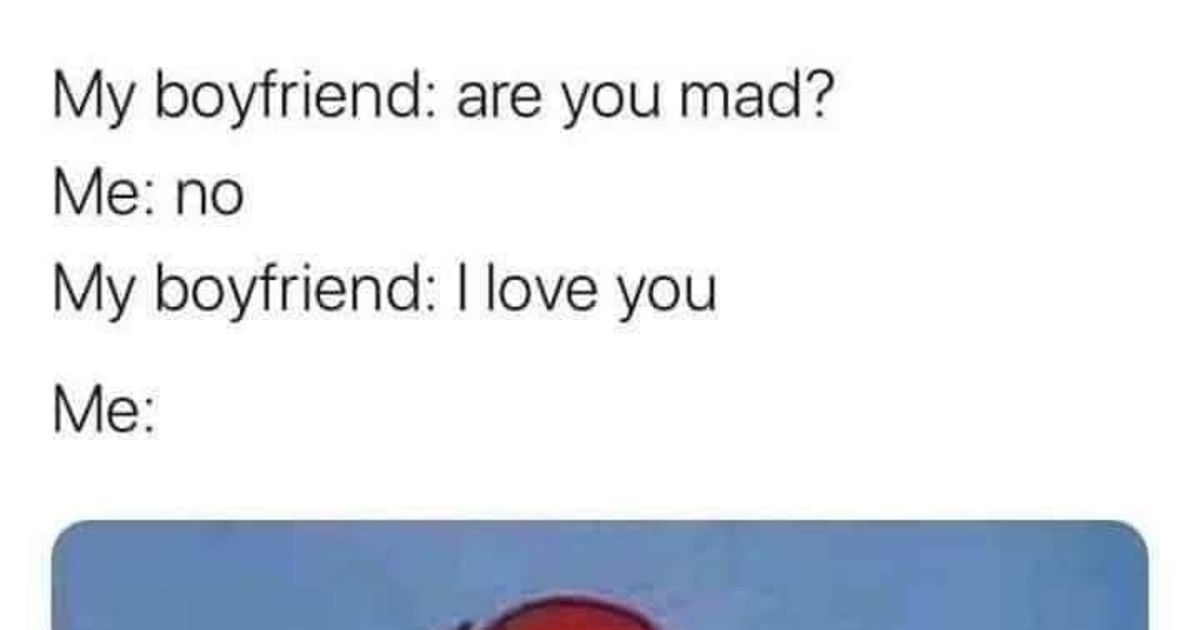 My boyfriend: Are you mad at me?