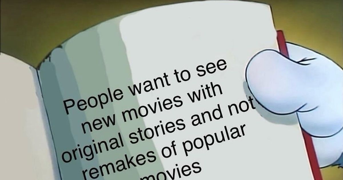 People want to see new movies with original stories and not remakes of popular movies