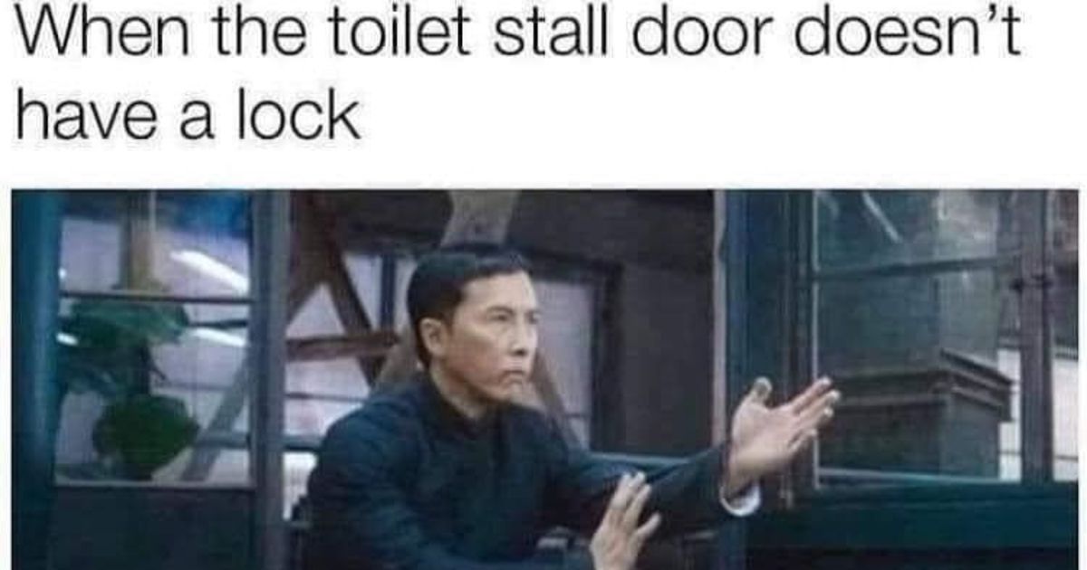 When the toilet stall door doesn't have a lock
